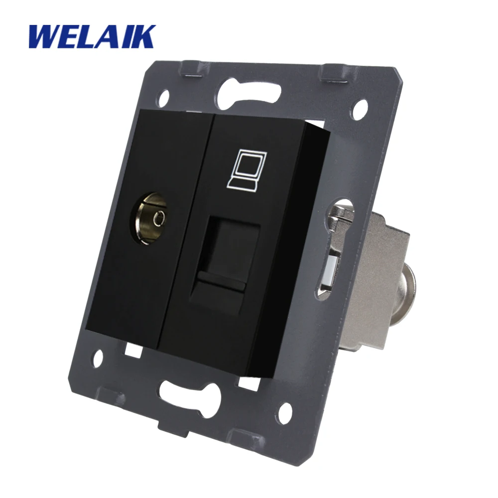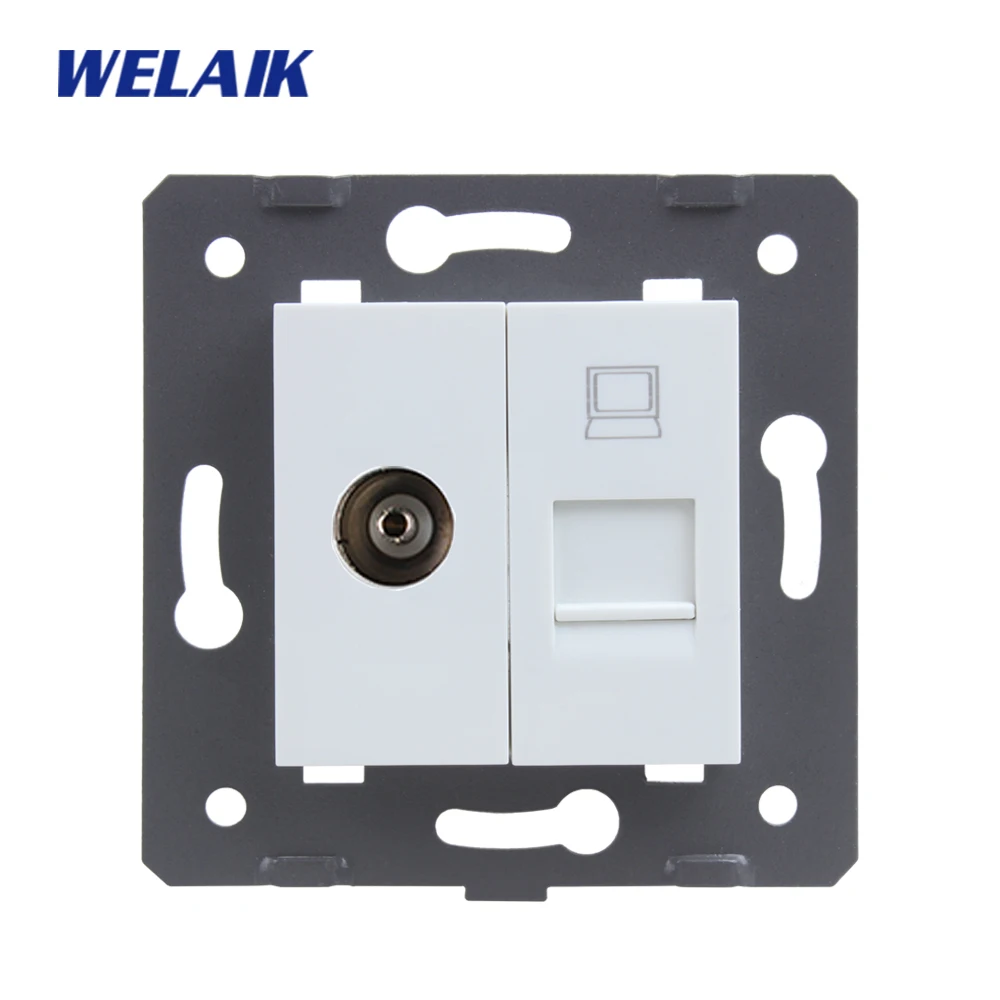 HIGH QUALITY WELAIK EU Standard-Gigabit CAT6A Super-shielded Computer RJ45 Socket+TV Socket DIY Parts-Wall Witho